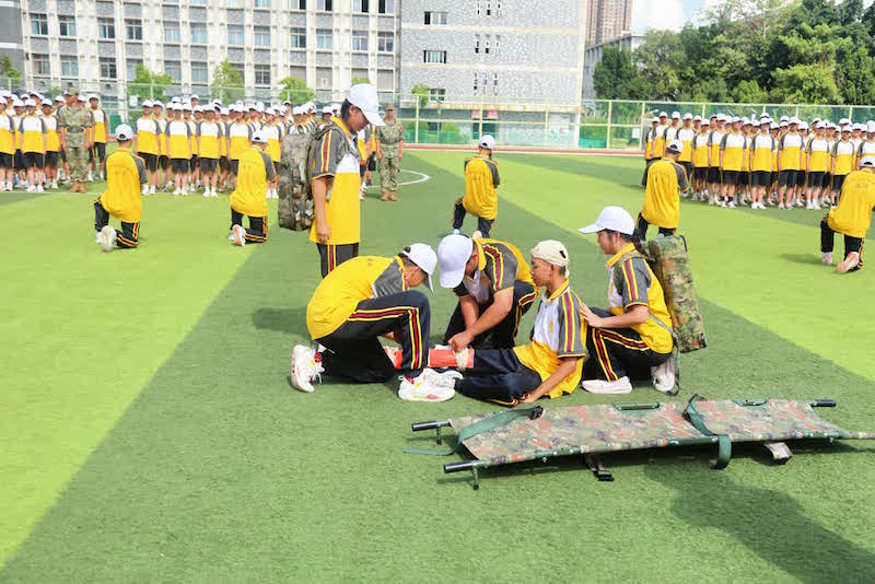 分列式后,同学们进行了精彩的军事训练科目汇报表演。军体拳、擒敌拳、战术与救护等表演以整齐连贯的动作、嘹亮的口号、有力的气势。每一个动作都精准到位,每一处细节都力求完美,充分展示了此次军事训练的丰硕成果,展现了新时代青年良好的综合素质和精神风貌。