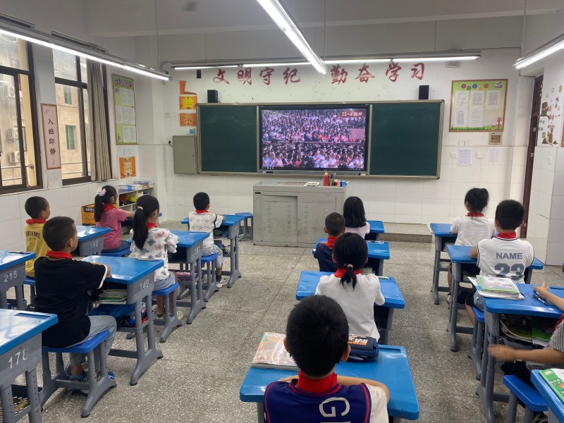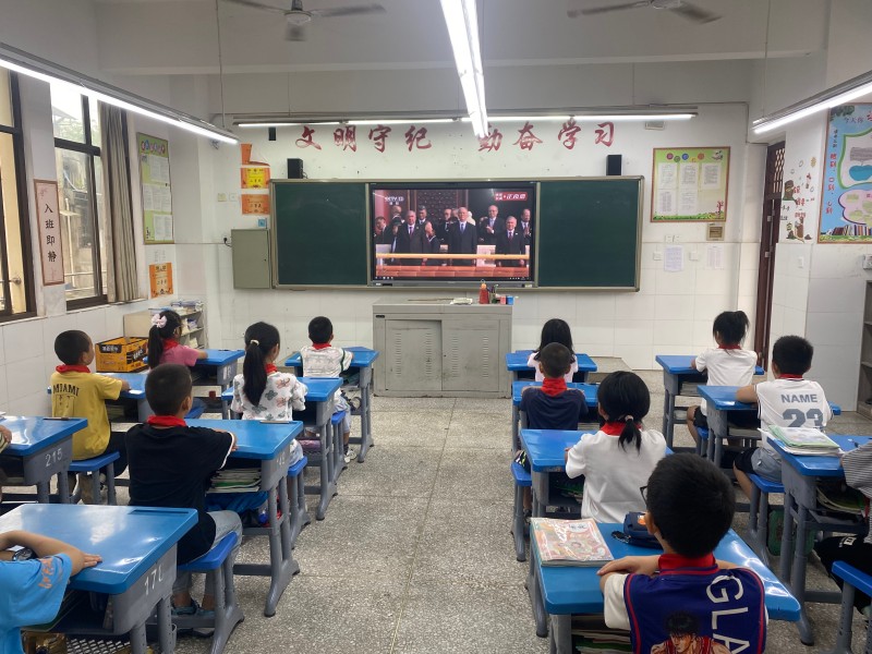 学校各个班级都认真组织了师生共同观看本次抗战胜利80周年阅兵的仪式。教室里,同学们整齐地坐着,眼神中充满了期待与庄重。当阅兵仪式开始,看到三军将士迈着整齐的步伐走过天安门广场,看到各种先进的武器装备依次亮相,同学们都被深深地震撼了。