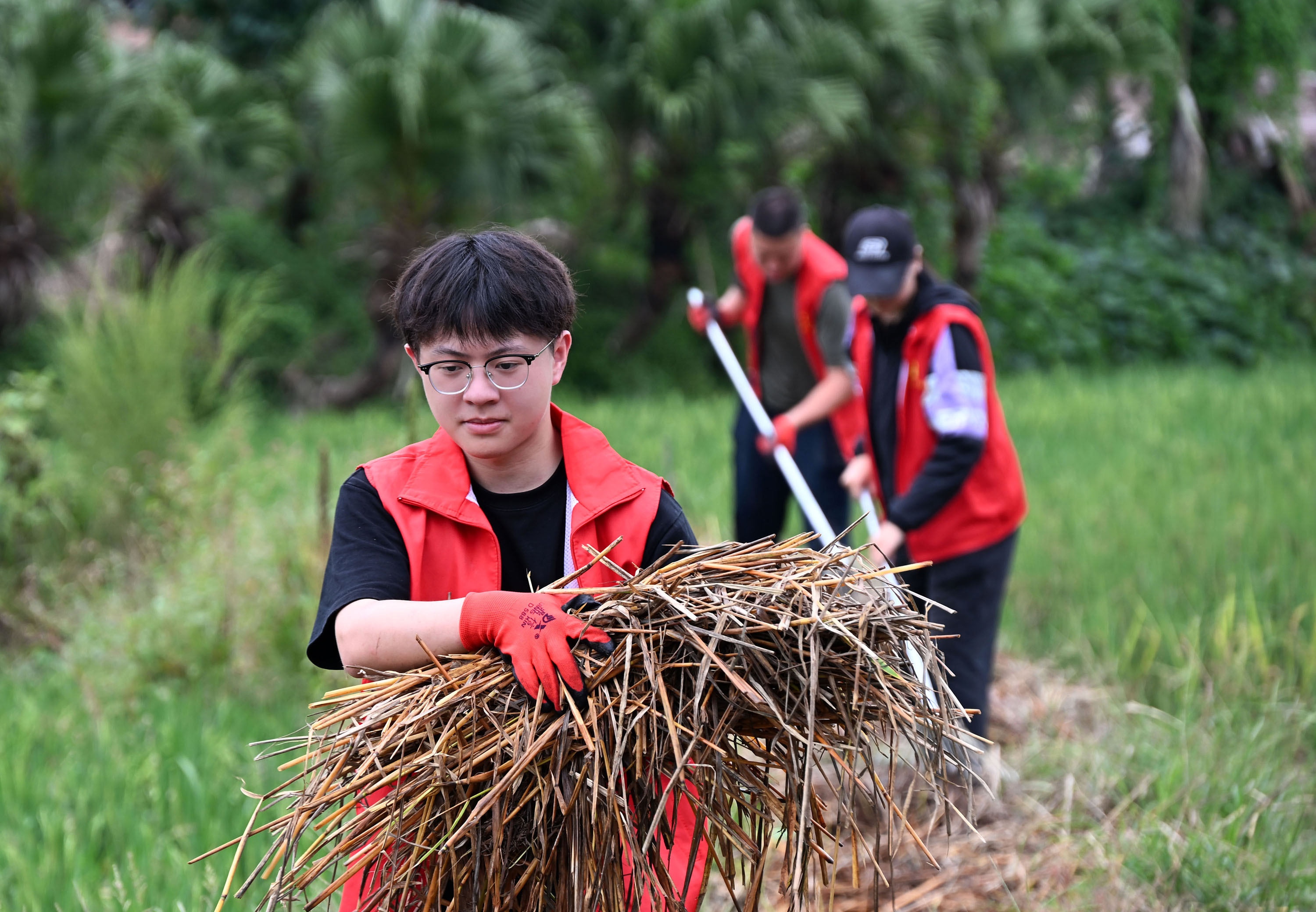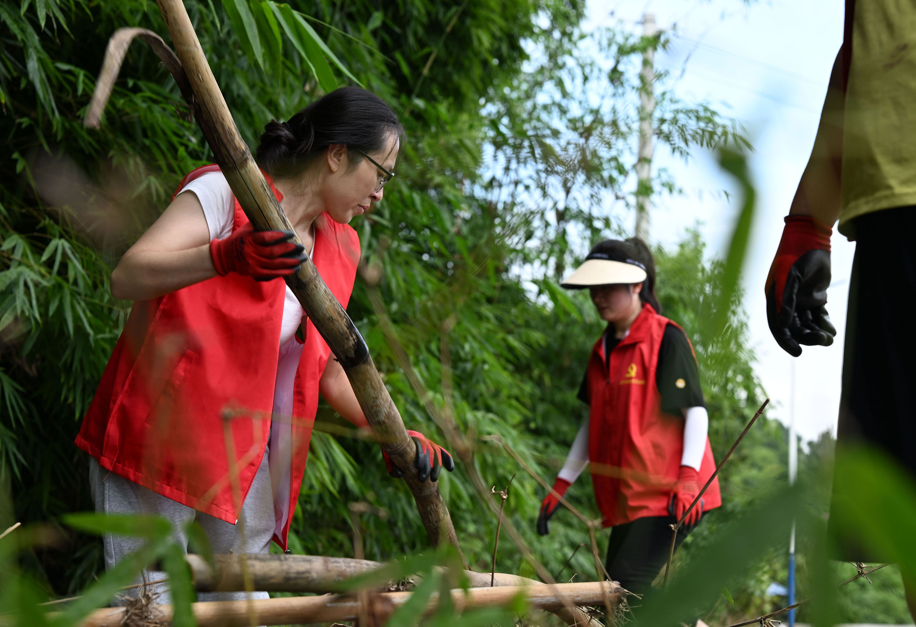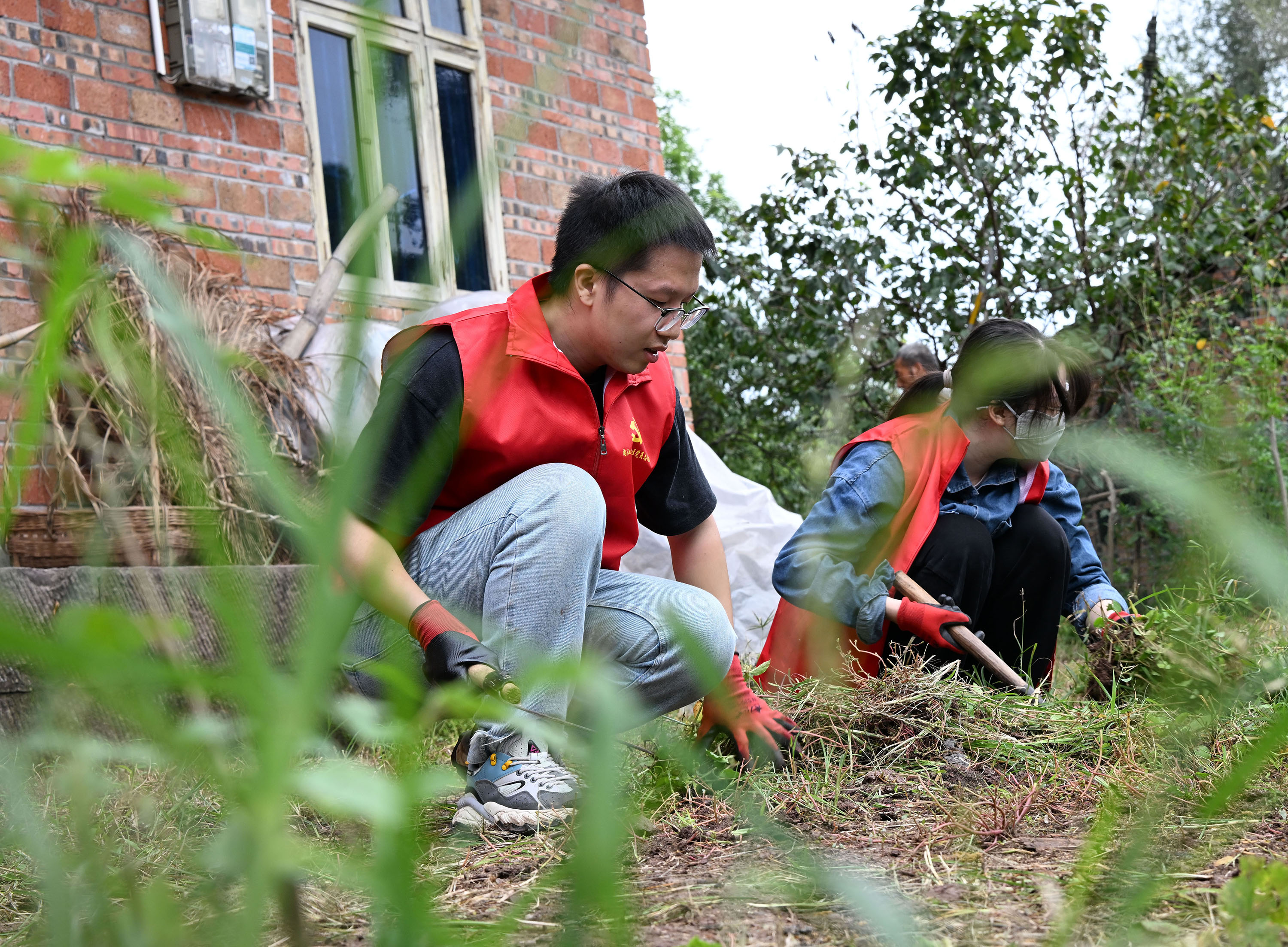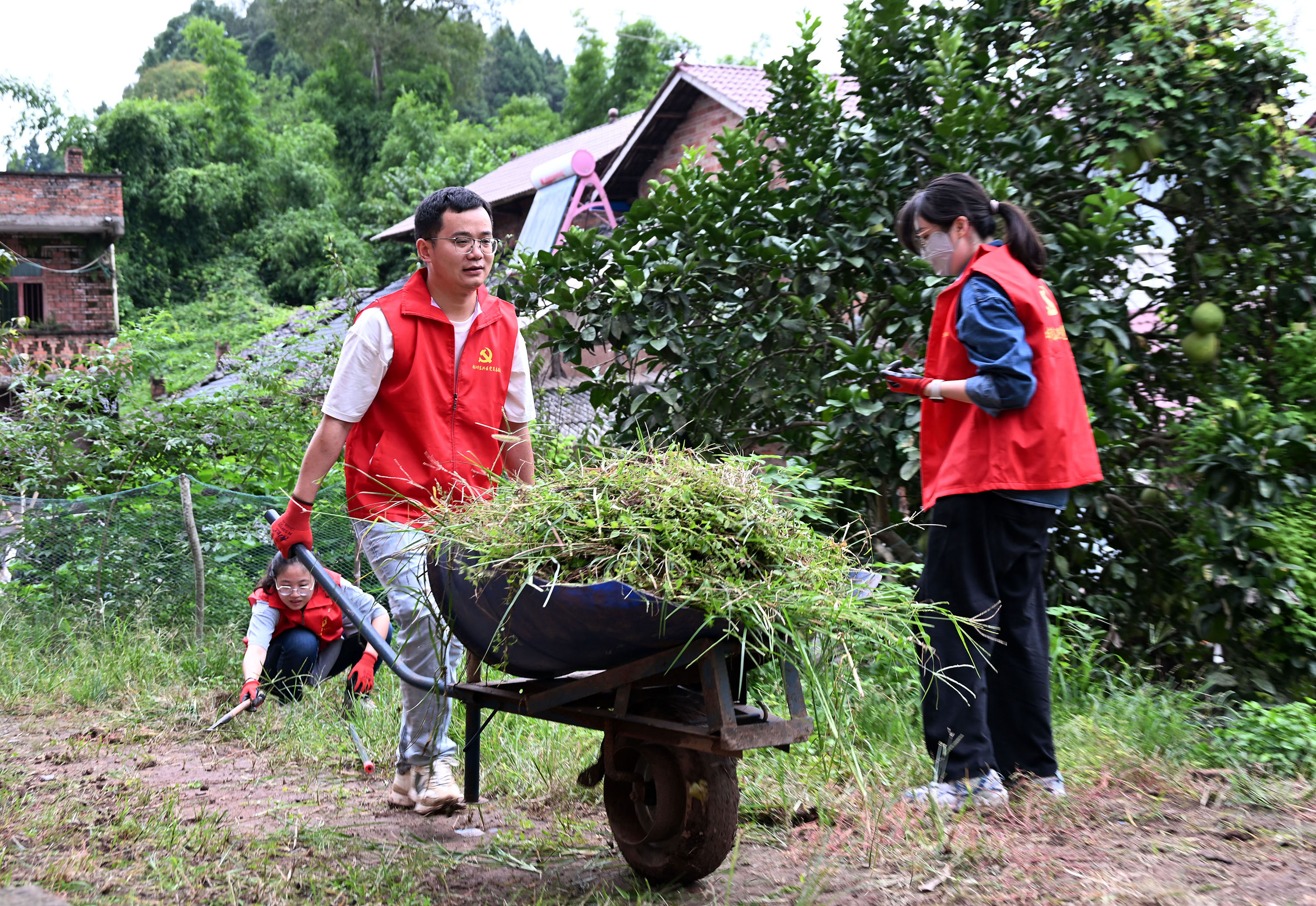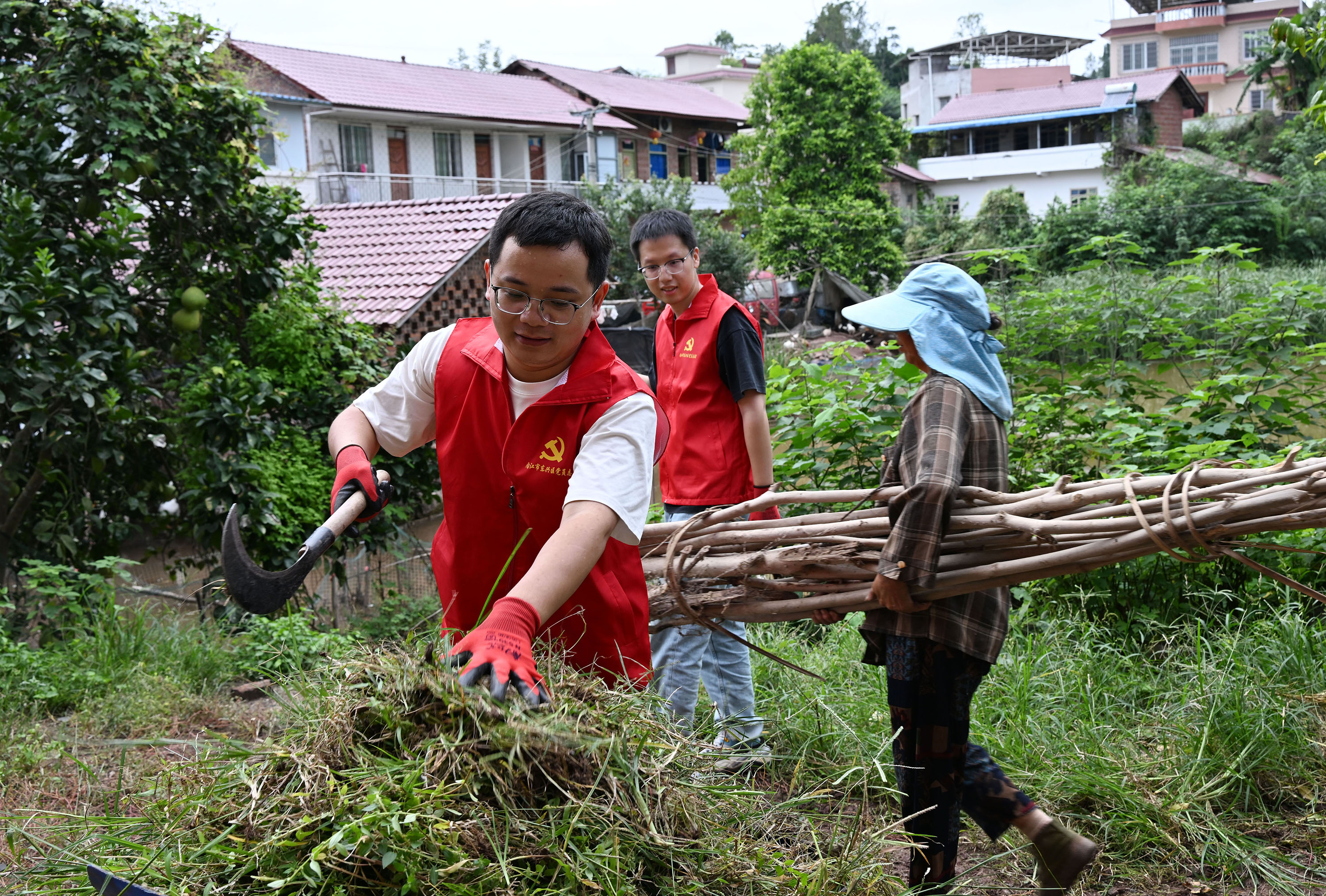 9月20日,在内江市东兴区顺河镇凤兴村,党员志愿者带头利用周末休息时间“清杂去乱”,净化和美化农村庭院。