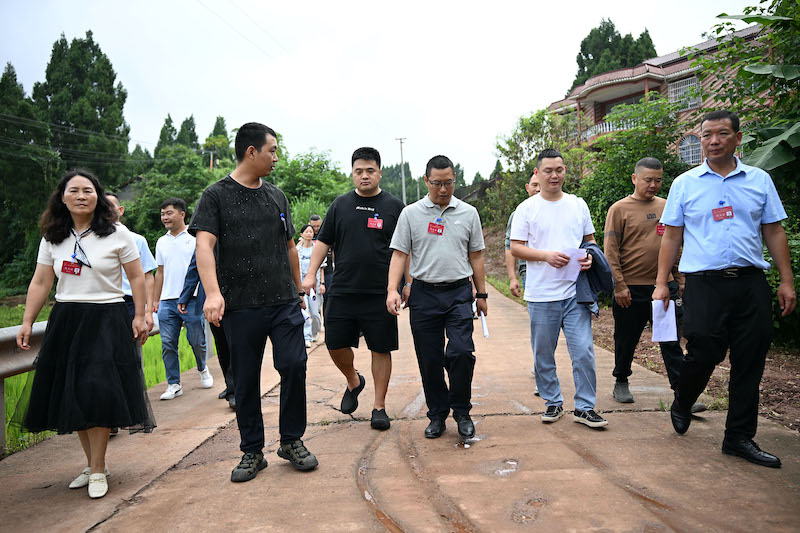 9月28日,内江市东兴区平坦镇组织镇领导班子成员、面改专班成员、驻村干部、村党组织书记和副书记、镇人大代表等50人对全镇9个村的面貌改善示范道路进行现场评比打分。