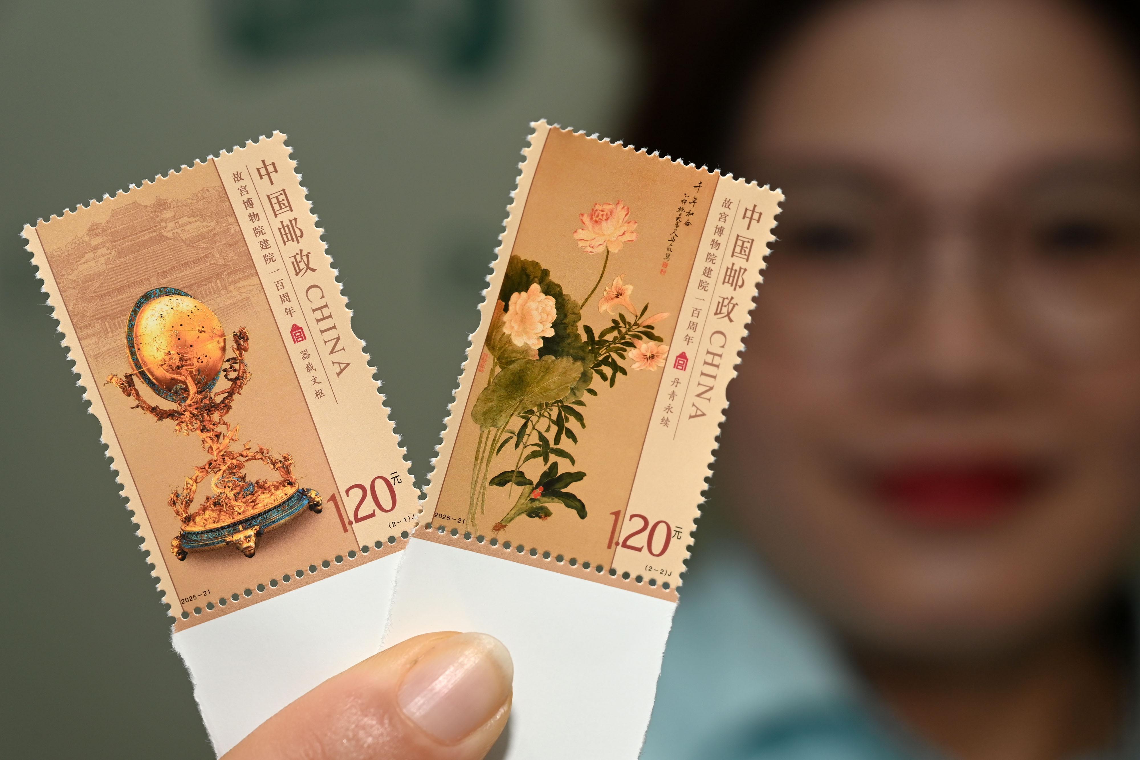 本套邮票采用平面设计结合手绘方式表现,整体色调沉稳古朴,风格雅致素简,既保留了传统文物与建筑的历史厚重感,又通过现代设计美学提升了视觉表现力与艺术观赏性。第一枚“器载文枢”,以“金嵌珍珠天球仪”为主体视觉元素,画面上方巧妙融入故宫神武门及周边宫殿群,直观展现出故宫建筑群气象万千的宏大气势,将文物之美与建筑之雄完美结合。第二枚“丹青永续”,以《千年和合轴》为核心内容,“和合”二字承载着中华民族和谐包容、兼收并蓄的哲学思想,传递出中华传统文化历经千年传承、在新时代焕发新生的精神内核。(文/图 兰自涛)