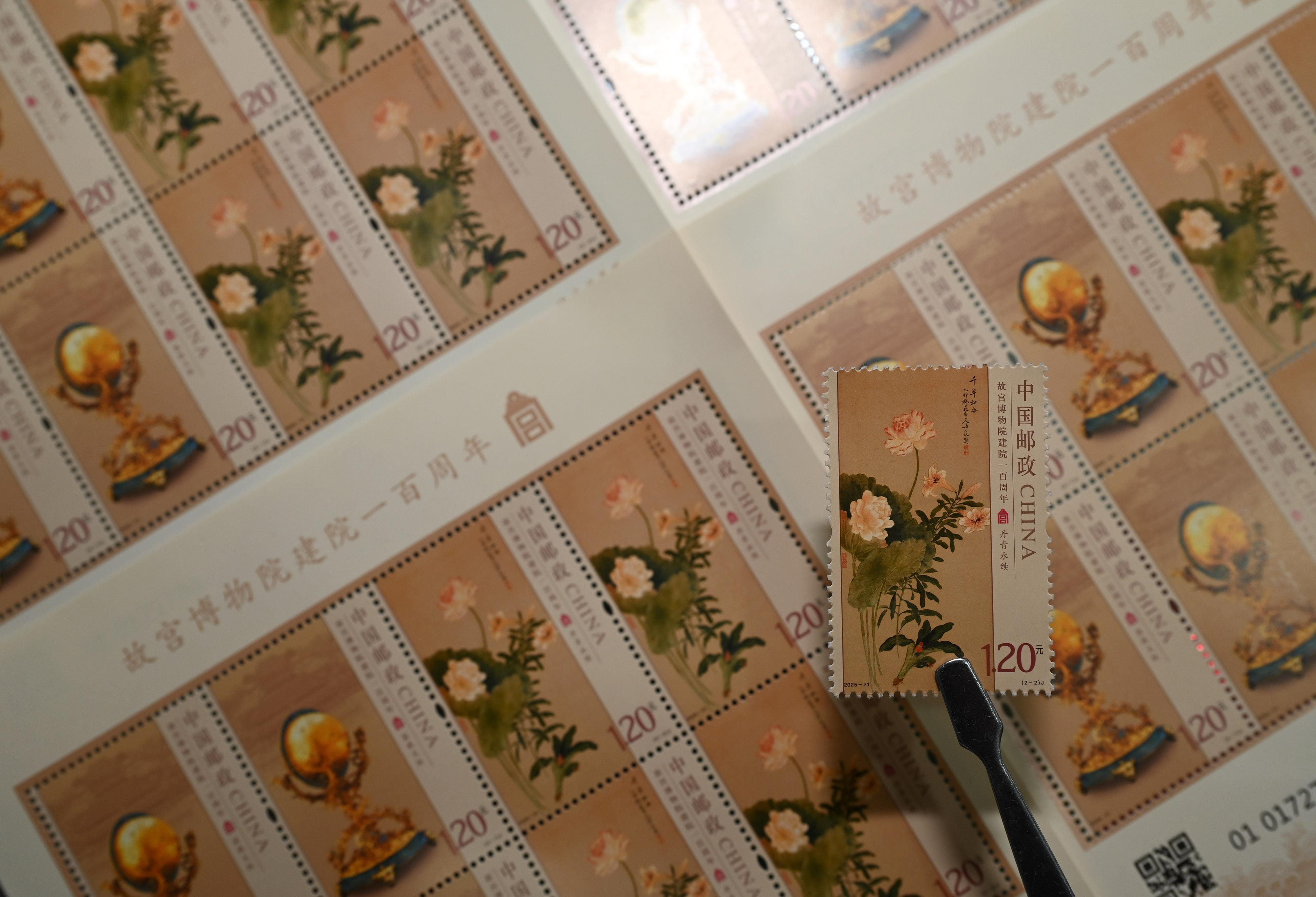 当日,中国邮政发行《故宫博物院建院一百周年》纪念邮票1套2枚,邮票图案名称为:器载文枢、丹青永续。全套邮票面值2.40元。