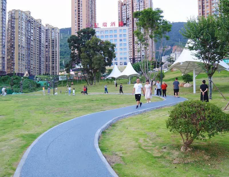“现在好了,不仅有健身步道,城区的人行道也新修了,还增加了这么多绿化,走着心情都舒畅。”