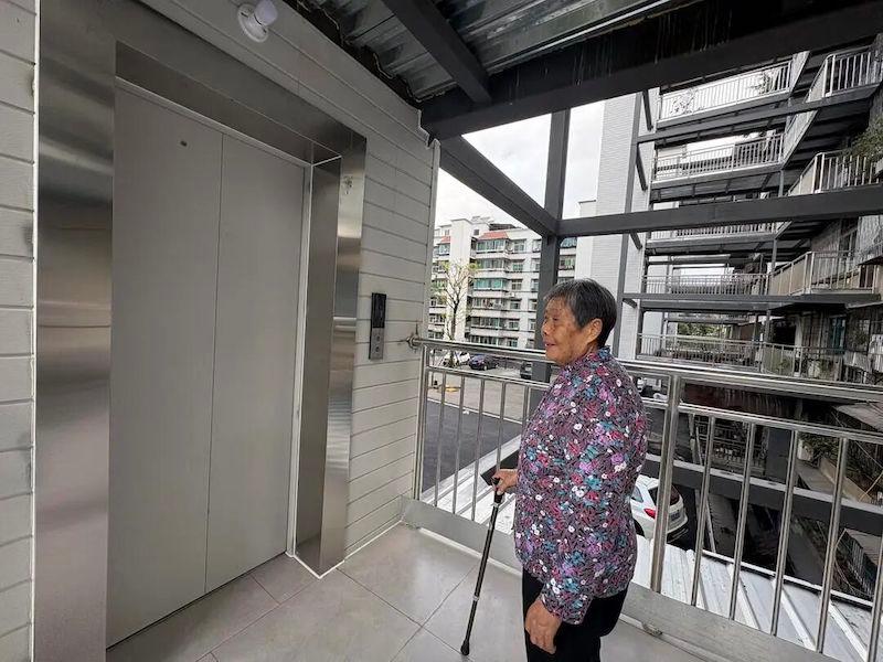 谢其英讲述,她和老伴都已经是八九十岁高龄的老人了,腿脚已经不是很灵活了,电梯启用前,每天上下楼对她和老伴来说都是一种挑战,“从平台小广场到家,要爬二三十级台阶,走两步就得歇一歇。现在,电梯直达家门口,可以随时轻松下楼散步、晒太阳。”
