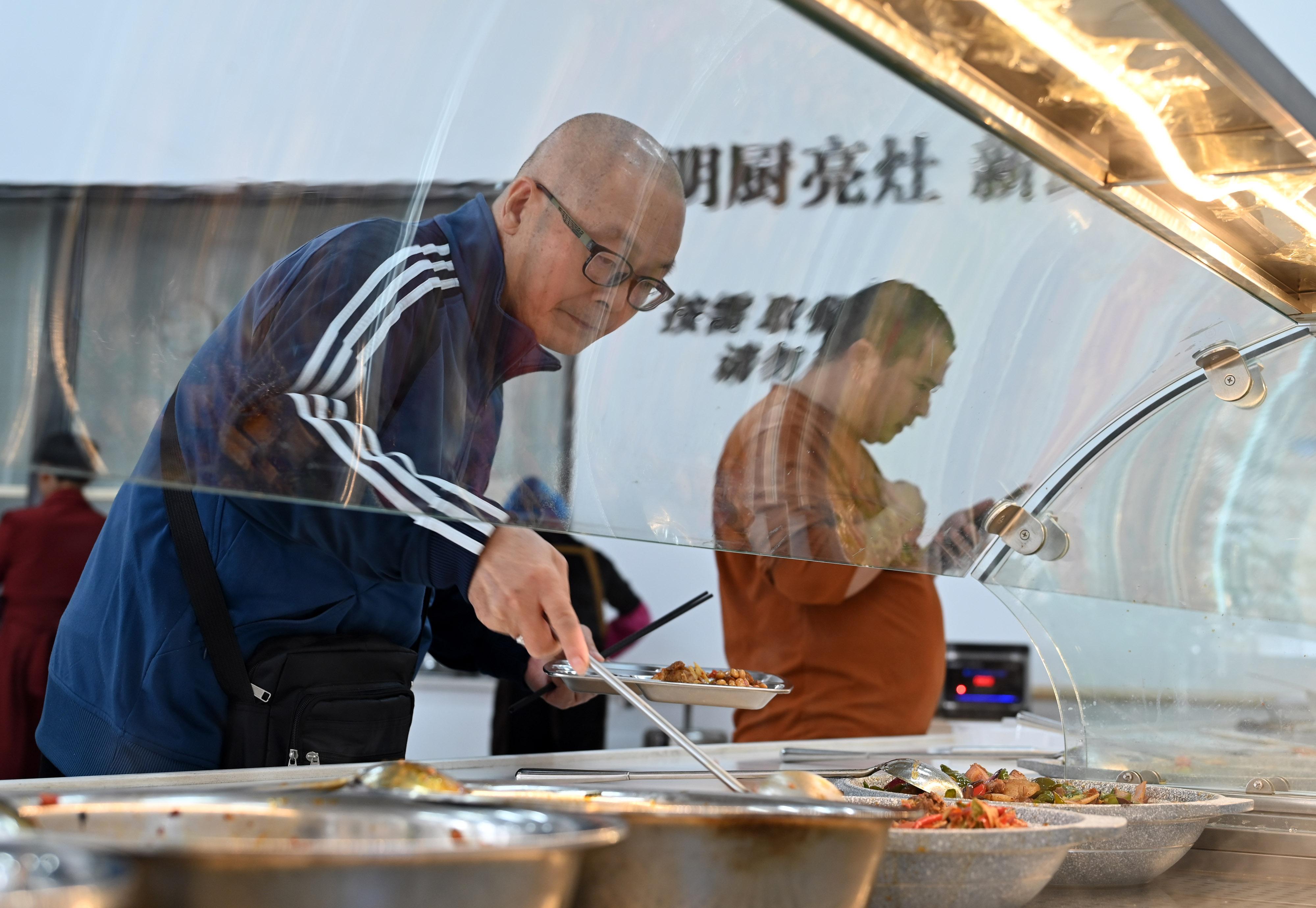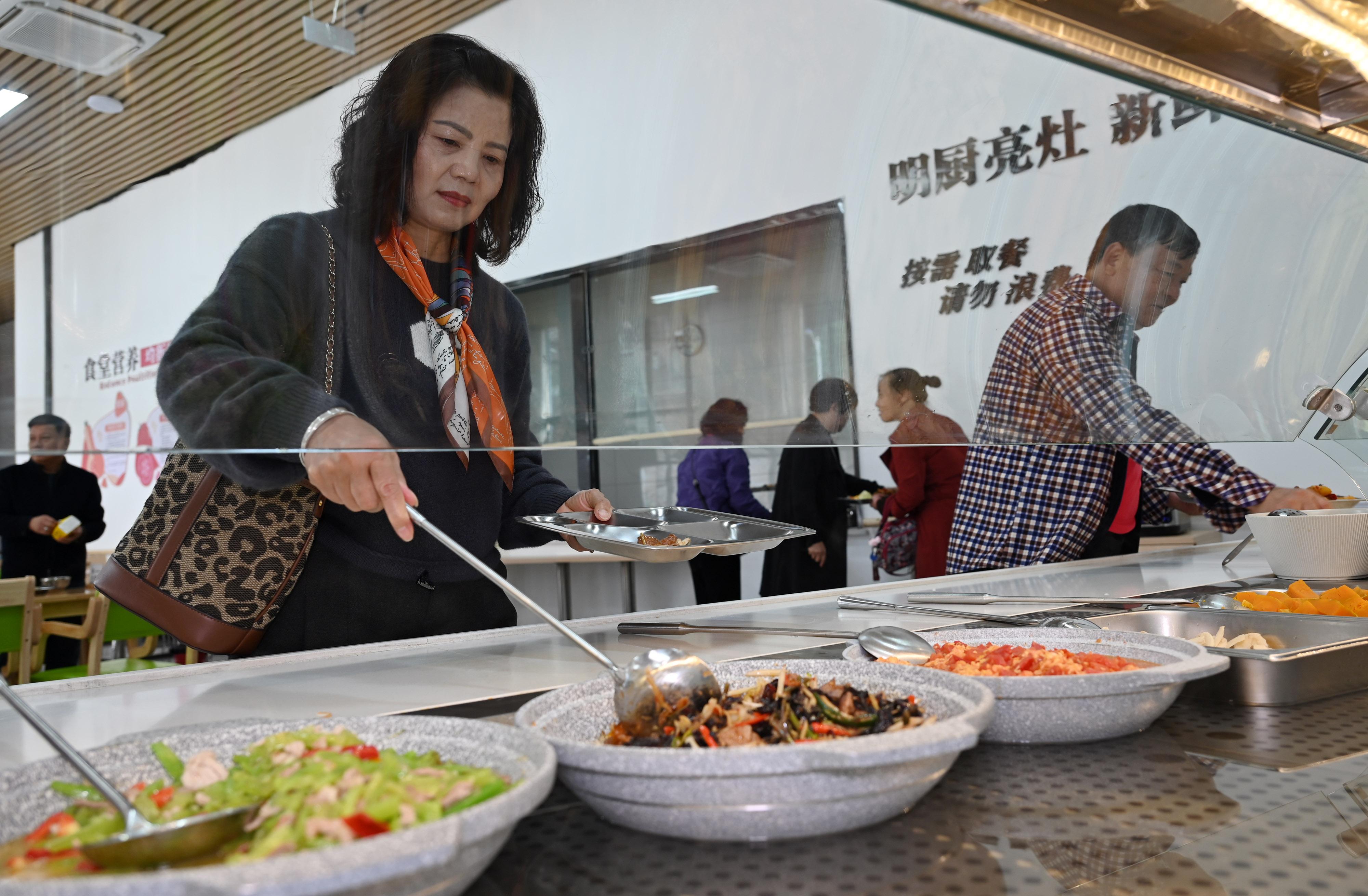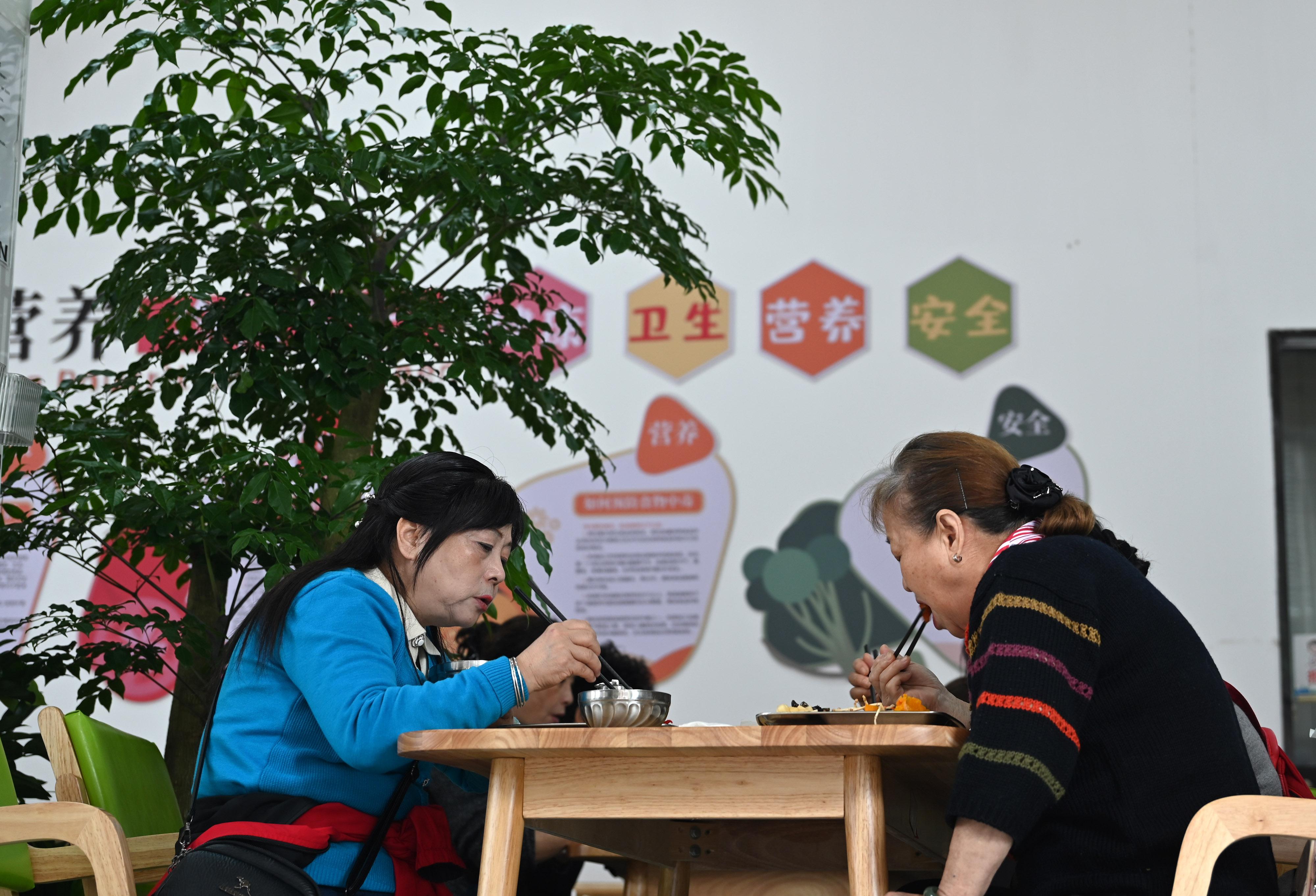 10月28日,在内江市东兴区东兴街道607社区,老年群众正在社区食堂就餐。