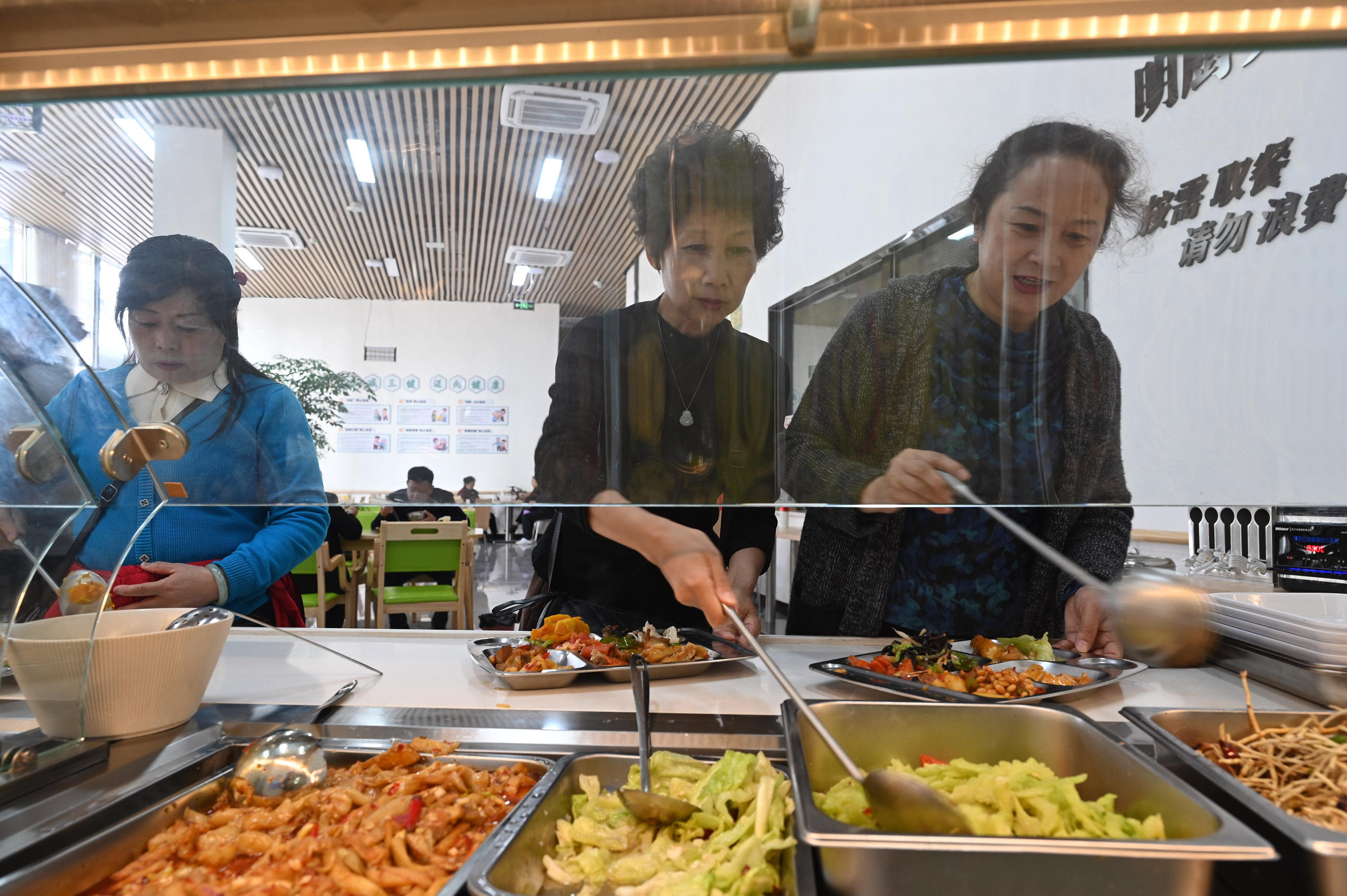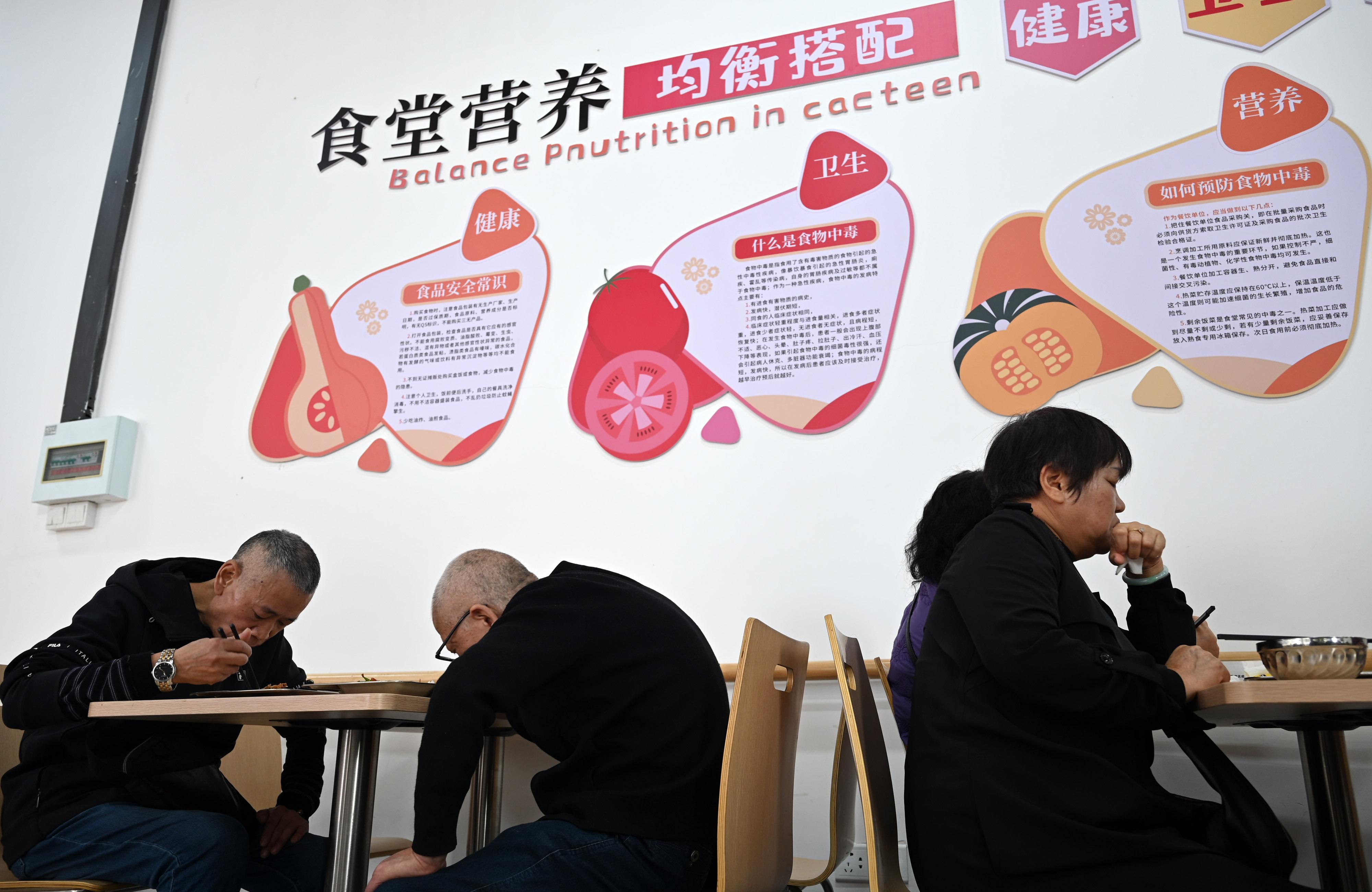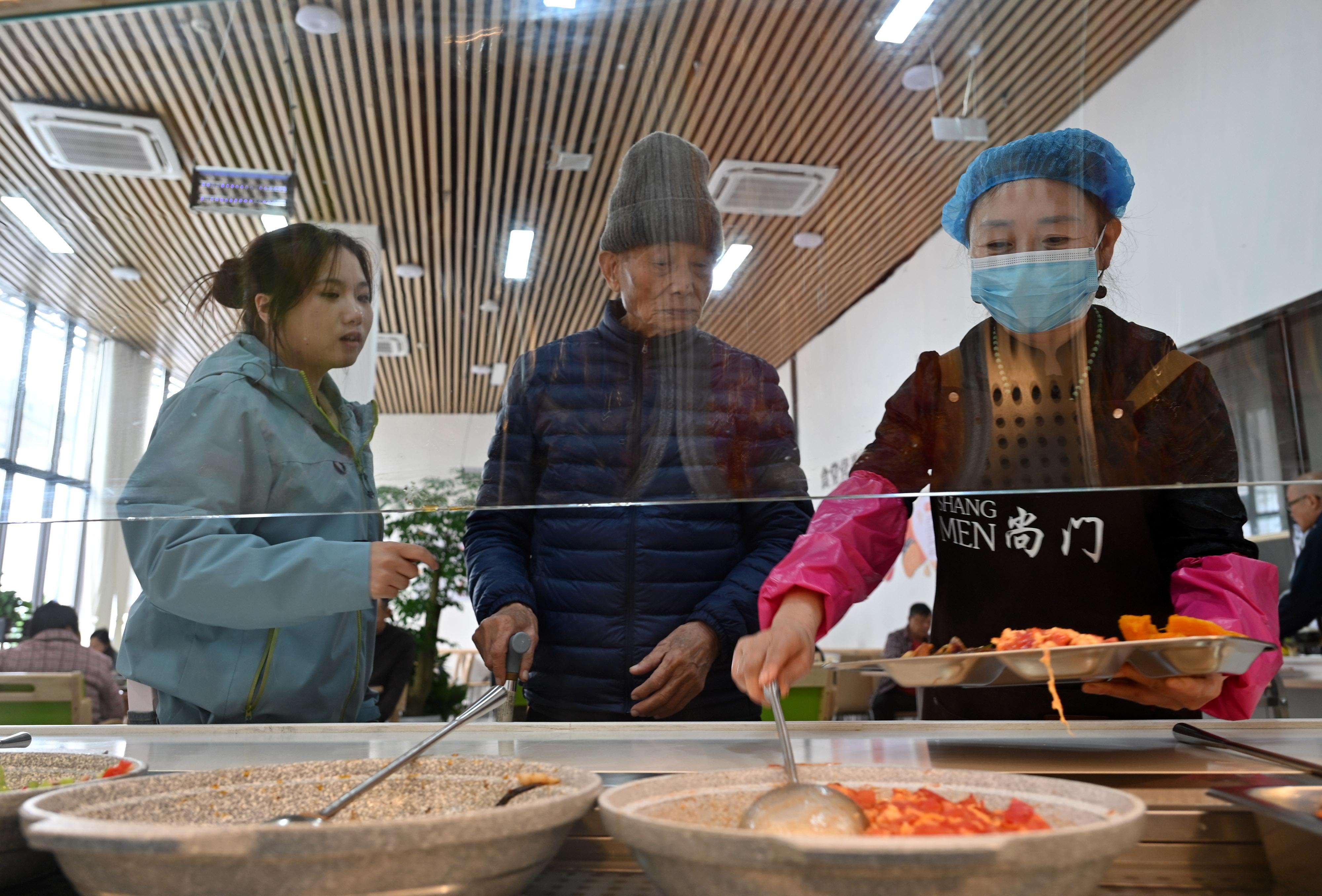 10月28日,在内江市东兴区东兴街道607社区,老年群众正在社区食堂就餐。