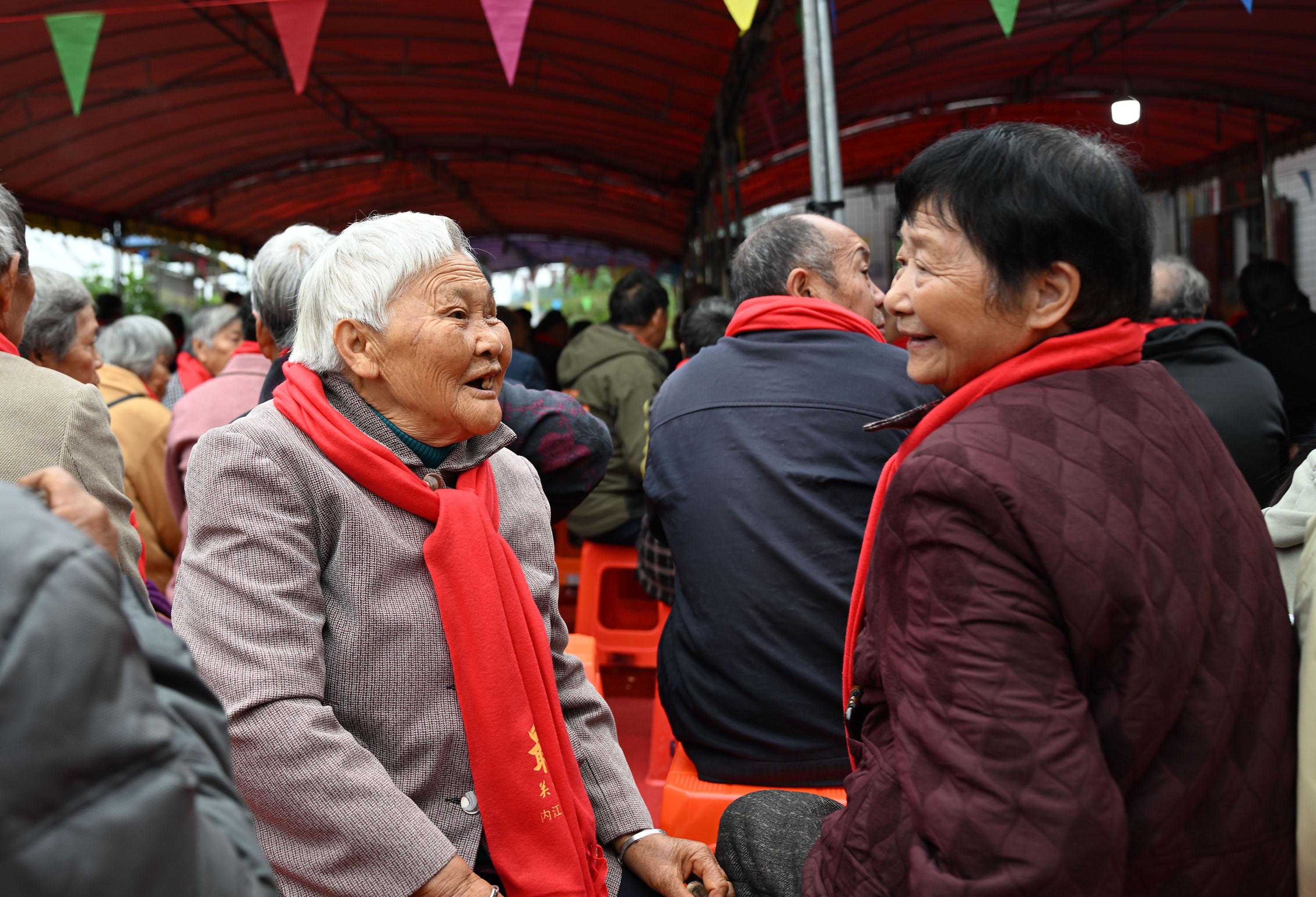 重阳前夕,内江市东兴区永福镇鲤鱼塘村以“情暖夕阳,童心同行”为主题,搭建“老人+儿童+志愿者”重阳活动桥梁,邀请村里300余名70岁以上的老人欢聚一堂,通过拉家常、聊健康、看表演、吃九大碗,并通过网络进行现场直播,以此激活文化根脉,营造喜迎重阳的热烈氛围,传承和弘扬敬老爱老的中华传统美德,丰富全龄友好型社会建设的深刻内涵。(文/图 李建明)