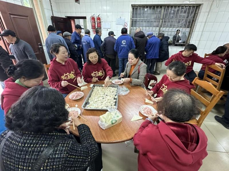 文艺表演在雄壮的《歌唱祖国》歌声中结束,一部分志愿者陪老人聊天,一部分陪老年人包抄手。