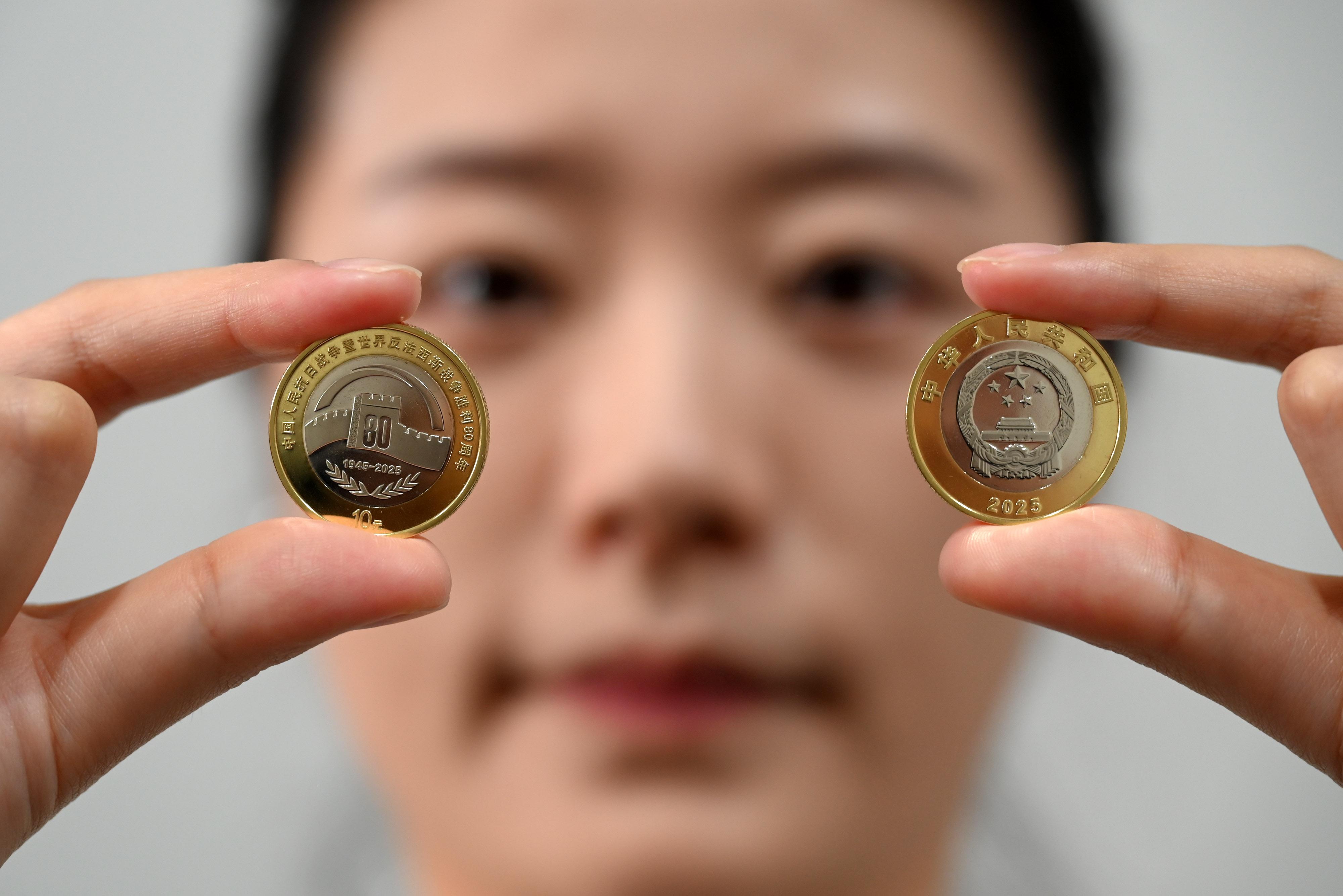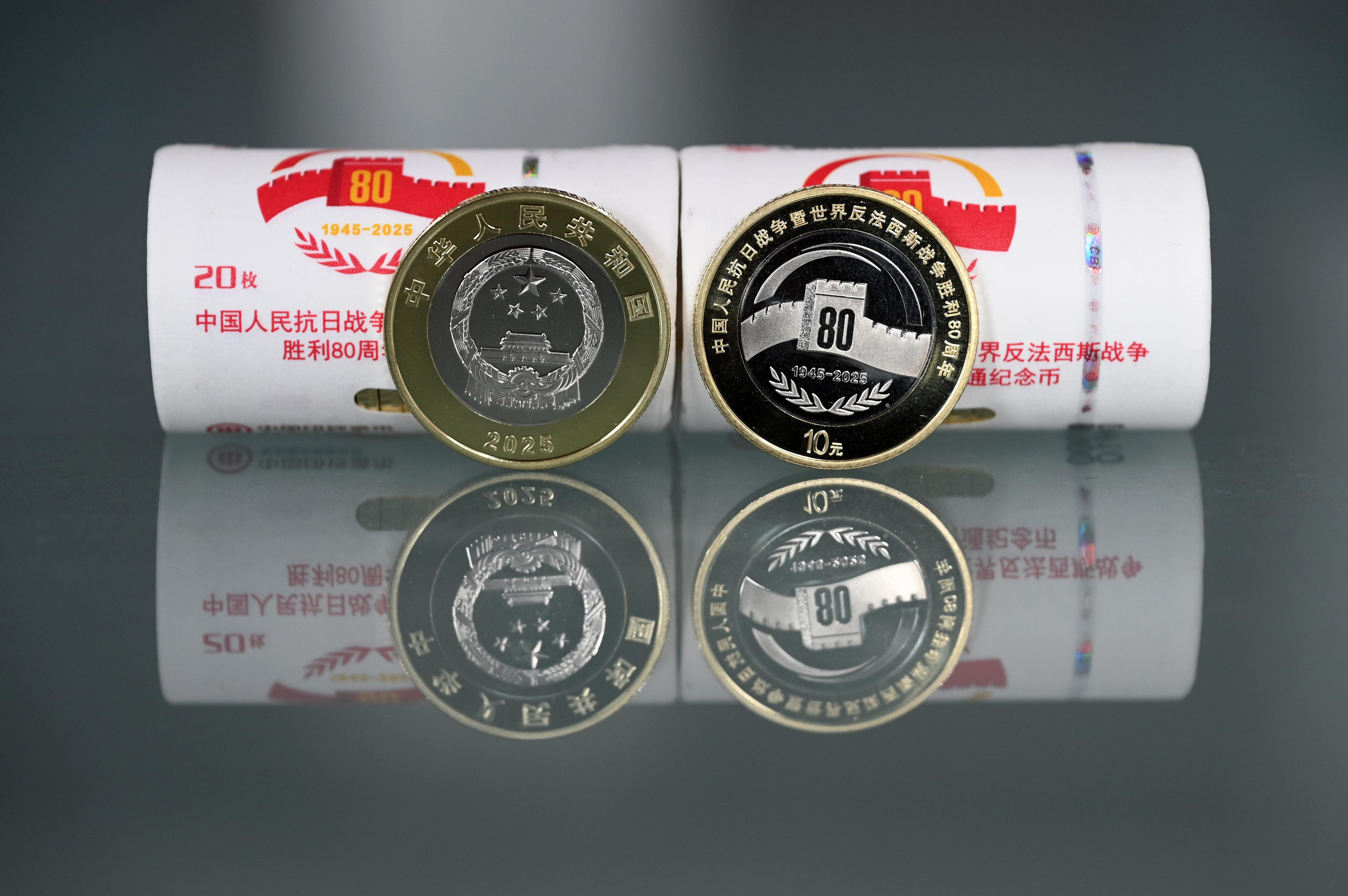 当日,中国人民银行正式发行中国人民抗日战争暨世界反法西斯战争胜利80周年双色铜合金纪念币。该枚双色铜合金纪念币面额10元,发行数量8000万枚,与现行流通人民币职能相同,与同面额人民币等值流通,采取预约兑换方式发行。