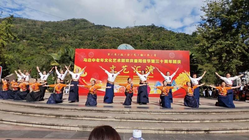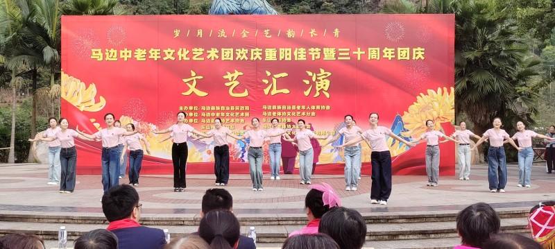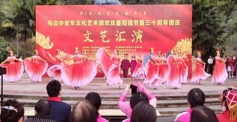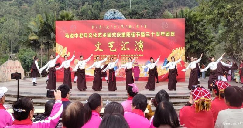 10月30日上午,马边彝族自治县张坝社区熊猫广场座无虚席,热闹非凡,现场洋溢着一片喜庆、欢乐、祥和的浓厚氛围。以“岁月流金·艺韵长青”为主题的马边中老年文化艺术团欢度重阳佳节暨成立30周年团庆文艺汇演活动在此举行。