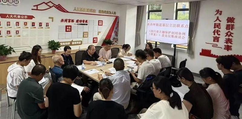 据了解,弄弄坪街道基层立法联系点于今年8月13日召开《四川省古籍保护利用条例(草案)》意见征集座谈会,广泛听取人大代表、社区居民、文化工作者及相关专家的意见建议。经过梳理整合,该联系点提交了多条修改建议,其中两条关键建议被采纳并写入最终通过的条例。