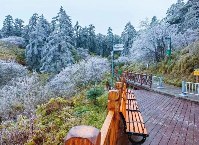 瓦屋山虽还没大雪纷飞,但一降温,山顶就会覆上一层薄薄的冬装。接下来,大家所期待的雪花,相信定会不期而至。