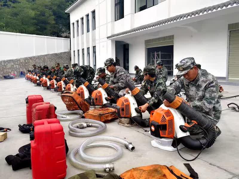在新建营房的训练场上,一派繁忙而有序的景象。队员们分组协作,严格按照装备维护保养规程,对每一台风力灭火机进行启动测试和风速检查,对割灌机进行磨合保养,对消防水泵进行试机运行……
