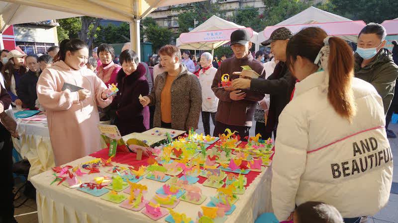 文艺演出后,居民们进入志愿服务集市,沉浸式感受志愿服务的温度与文化的魅力。在“专业社工+志愿服务”融合发展服务区,法律咨询、医疗义诊、科技普及等便民服务点位前人头攒动。居民王阿姨刚接受完攀枝花学院康养学院的中医理疗服务,她笑着说:“志愿者们很有耐心,现场给我做了艾灸,还给我讲解了很多养生知识,非常有用,为这样的活动点赞。”文化展示区的手工体验活动也深受欢迎,剪纸、糖画、书画创作等传统技艺让居民们流连忘返。