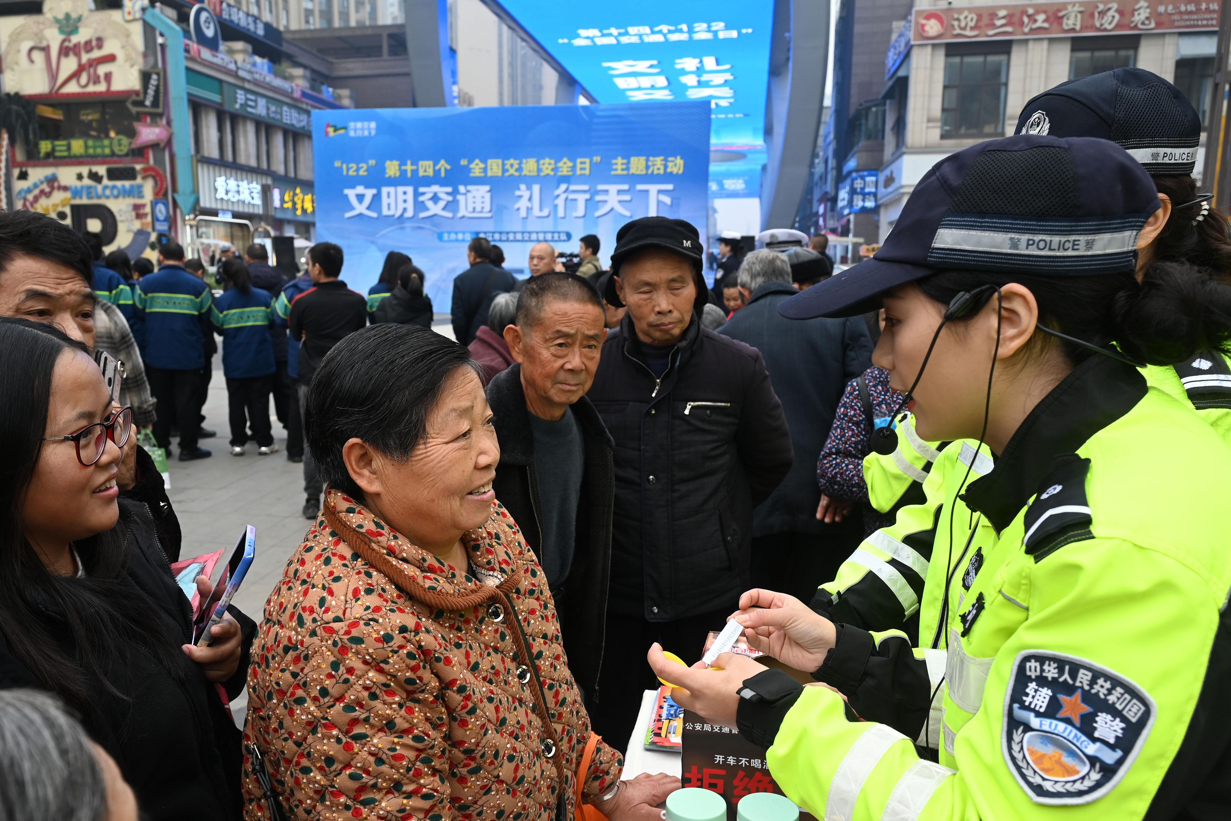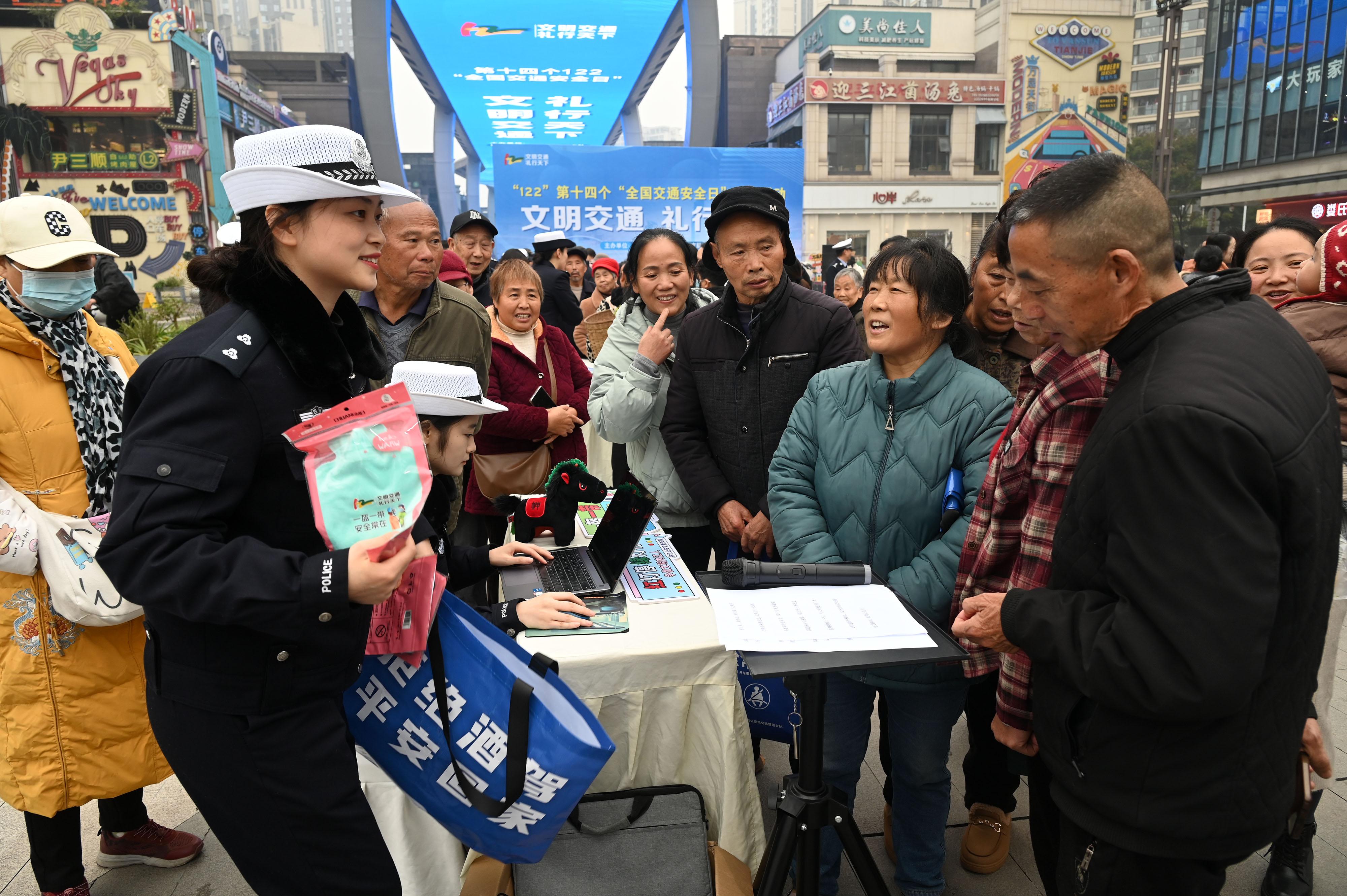 近日,市民在四川省内江市万晟天街参加交通安全宣传主题活动。